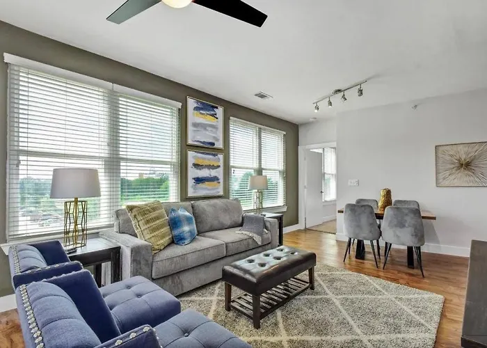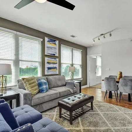 Appartement 2Br Airy Getaway Near Downtown Pool Gym comprend un balcon avec une climatisation pour un plus grand confort. La résidence dispose de 2 chambres à coucher. Le studio se compose de 2 salles de bain et offre une baignoire. Un sèche-cheveux et des draps de bain sont disponibles.